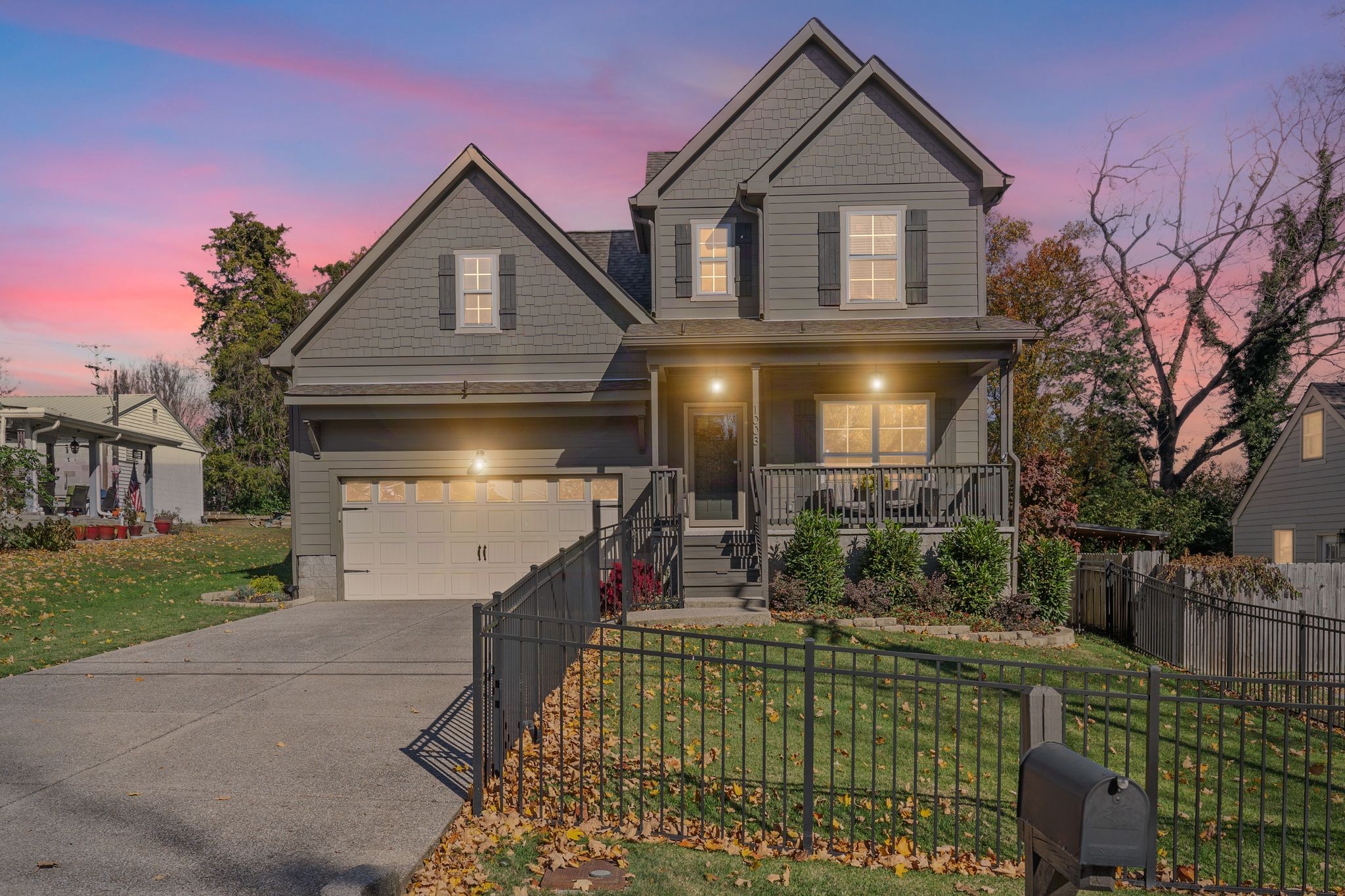 Hard to find in East Nashville, detached single-family home - not an HPR, no shared walls, not a tall-and-skinny. This property offers modern comfort and thoughtful design with 3 bedrooms, 2.5 bathrooms, 2,126 sq ft, 2-car attached garage, and fully fenced front and back yards. Built in 2018, the home welcomes you with a covered front porch, a double-height entry. Inviting open floor plan with defined dining, kitchen and living spaces. Modern kitchen features granite counters, eat-in island, tile backsplash, stainless steel appliances with a gas range and pantry. Living room is anchored by a gas fireplace and views of the private backyard. Main-floor primary suite includes a tray ceiling, crown moulding, custom walk-in closet, and a spacious bathroom with tile shower, double vanities, water closet, and additional storage. Laundry room and half bath on main level. Upstairs offers two guest bedrooms, a full bathroom, and a versatile bonus room, along with a walk-in unfinished attic perfect for easy-access storage or future expansion. Outdoor living shines with a custom expanded covered back patio, built-in hot tub (stays!), a fully fenced front yard with black aluminum fencing, and a large backyard enclosed with upgraded vinyl fencing plus a storage shed. Additional upgrades include sand-and-finish hardwoods on the main level, enhanced landscaping and exterior lighting, gutter guards, an epoxy-coated garage floor, a tankless water heater, and more - making this a rare East Nashville find with space, privacy & modern amenities.